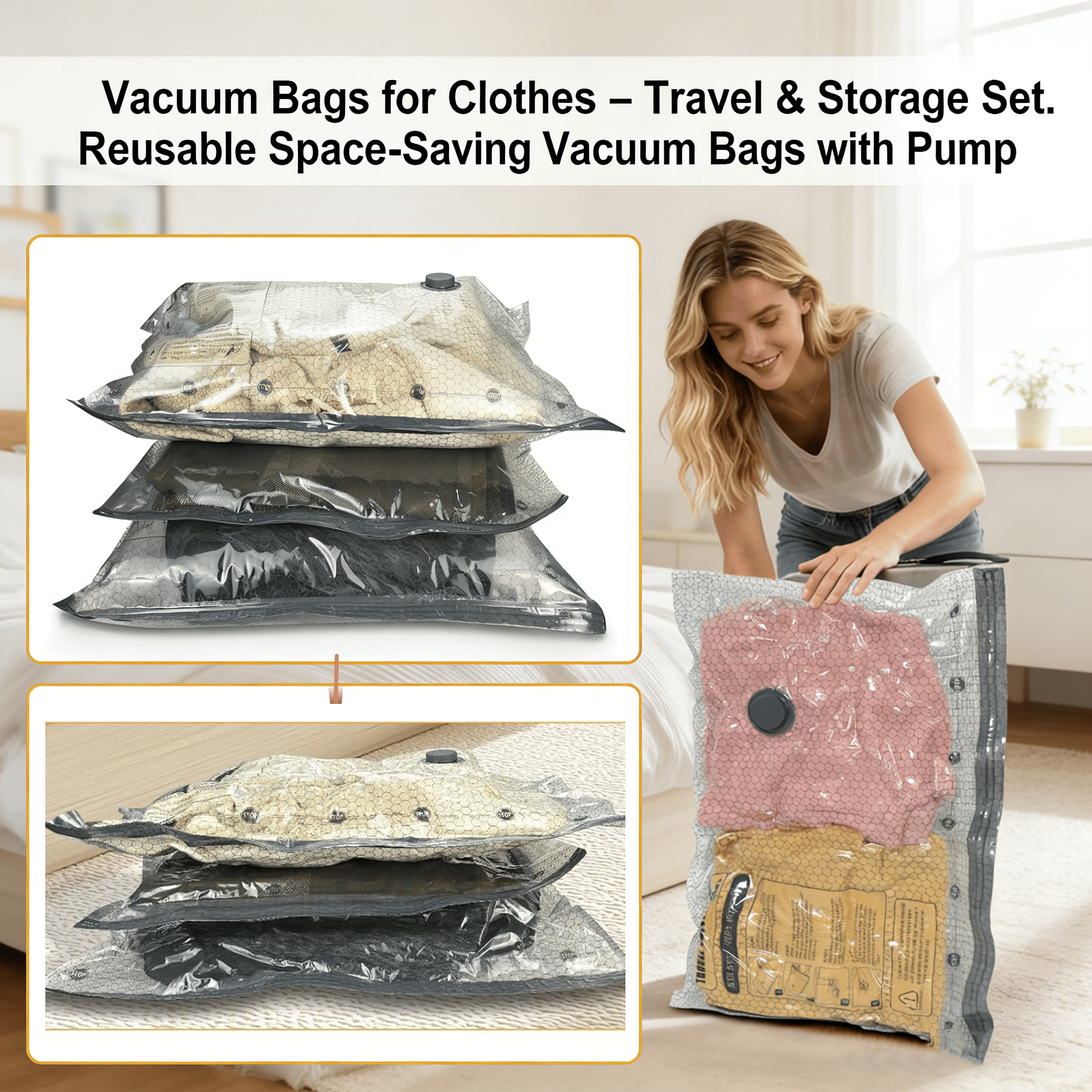 🧳 Vacuum Bags for Clothes – Travel & Storage Set
