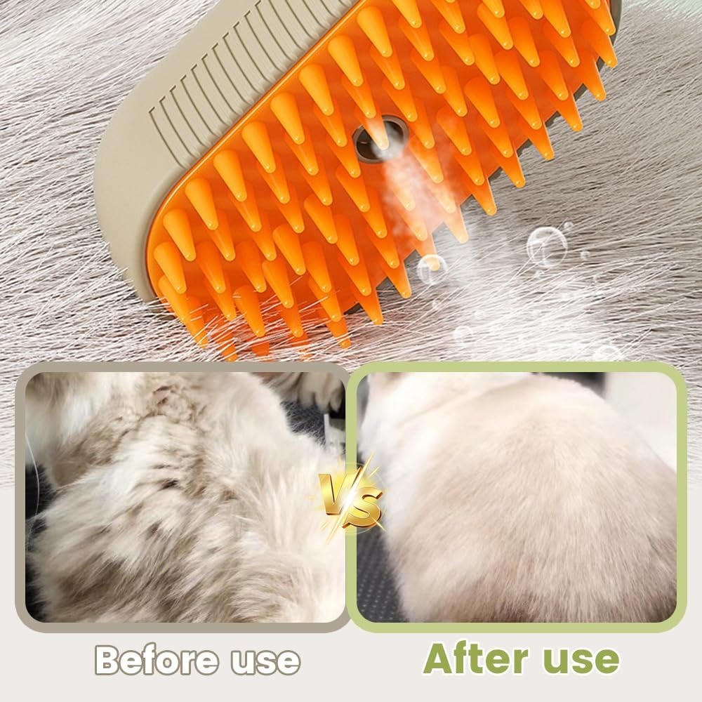 3 in 1 Cat Steamy Brush, it not only cleans dust & dirt, but also provides a soothing massage, Easily removes waste hair & detangles. Vapor-Lubrication Tech Micro-mist pores reduce static by 82% while grooming. Deep-cleans follicles, cutting baths by 40%.