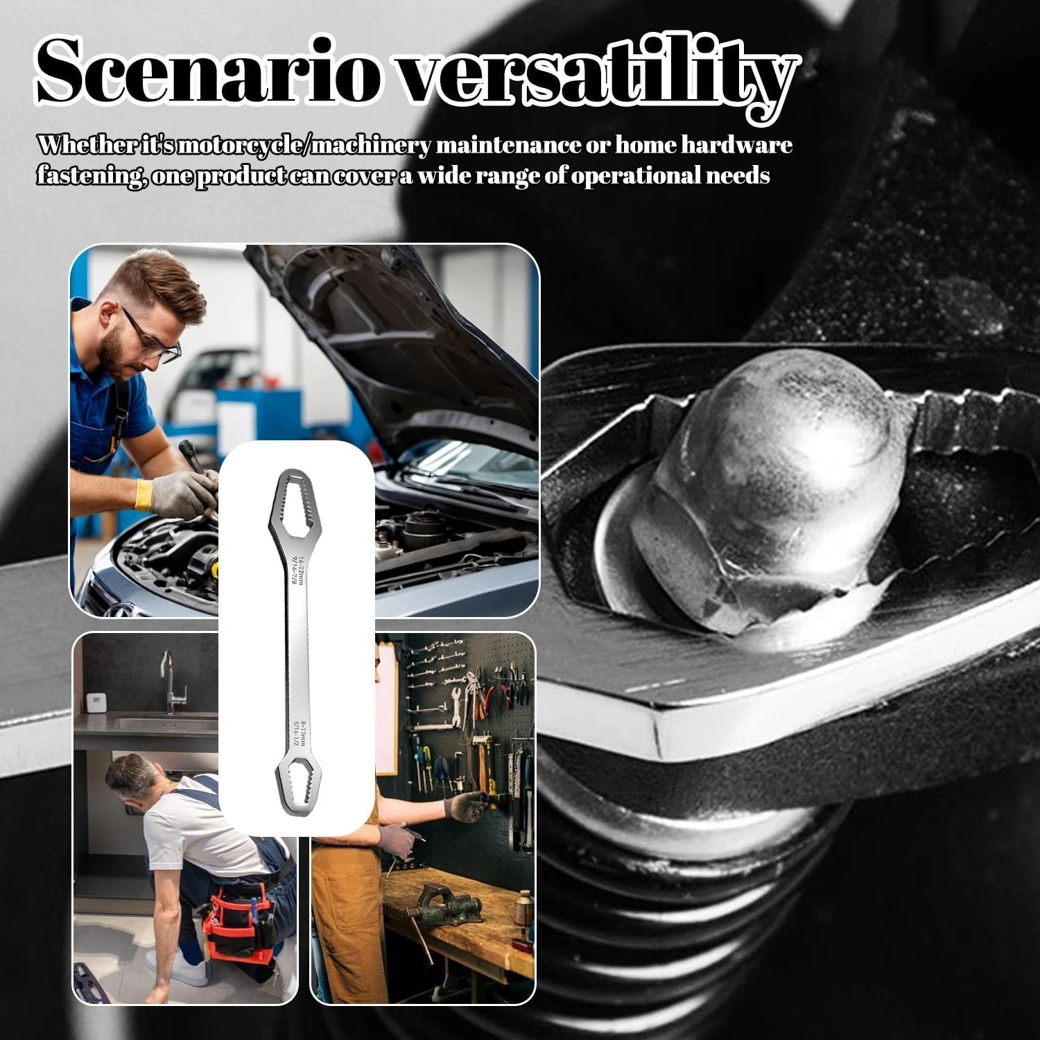【HIGH HARDNESS】Overall heat treatment, hardness up to HRC60, high quality chrome vanadium steel forging, the 8-24mm universal wrench is made of chrome vanadium steel with high hardness and super durability. Even after a long time of use, a strong wrench can still work well.