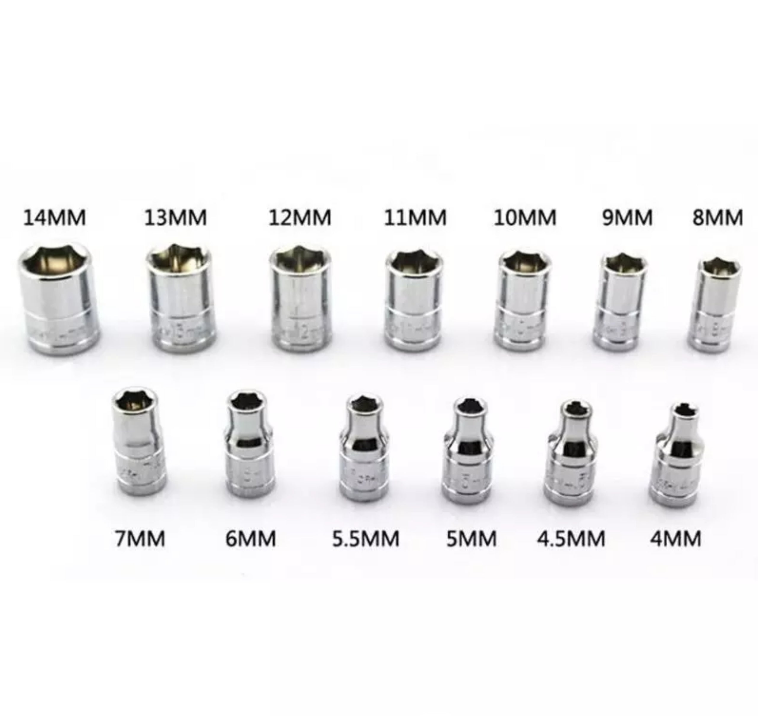13pcs 1/4" DR Sockets:4,4.5,5,5.5,6,7,8,9,10,11,12,13,14mm